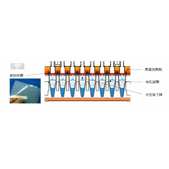 1.熱蓋採用密封性極佳的矽膠材料,加上熱蓋垂直下壓設計,每個孔內的樣品試劑在實驗中零蒸發。
